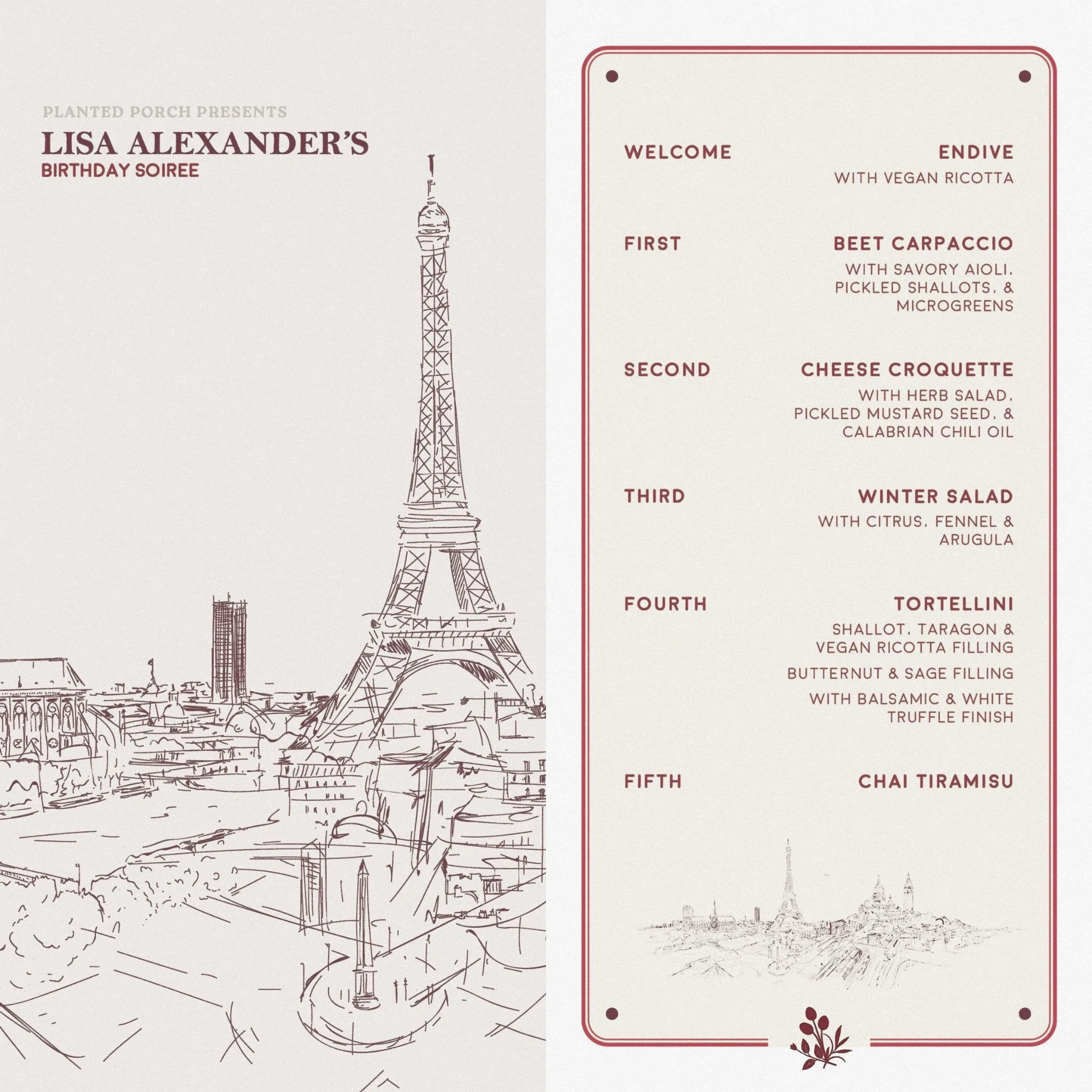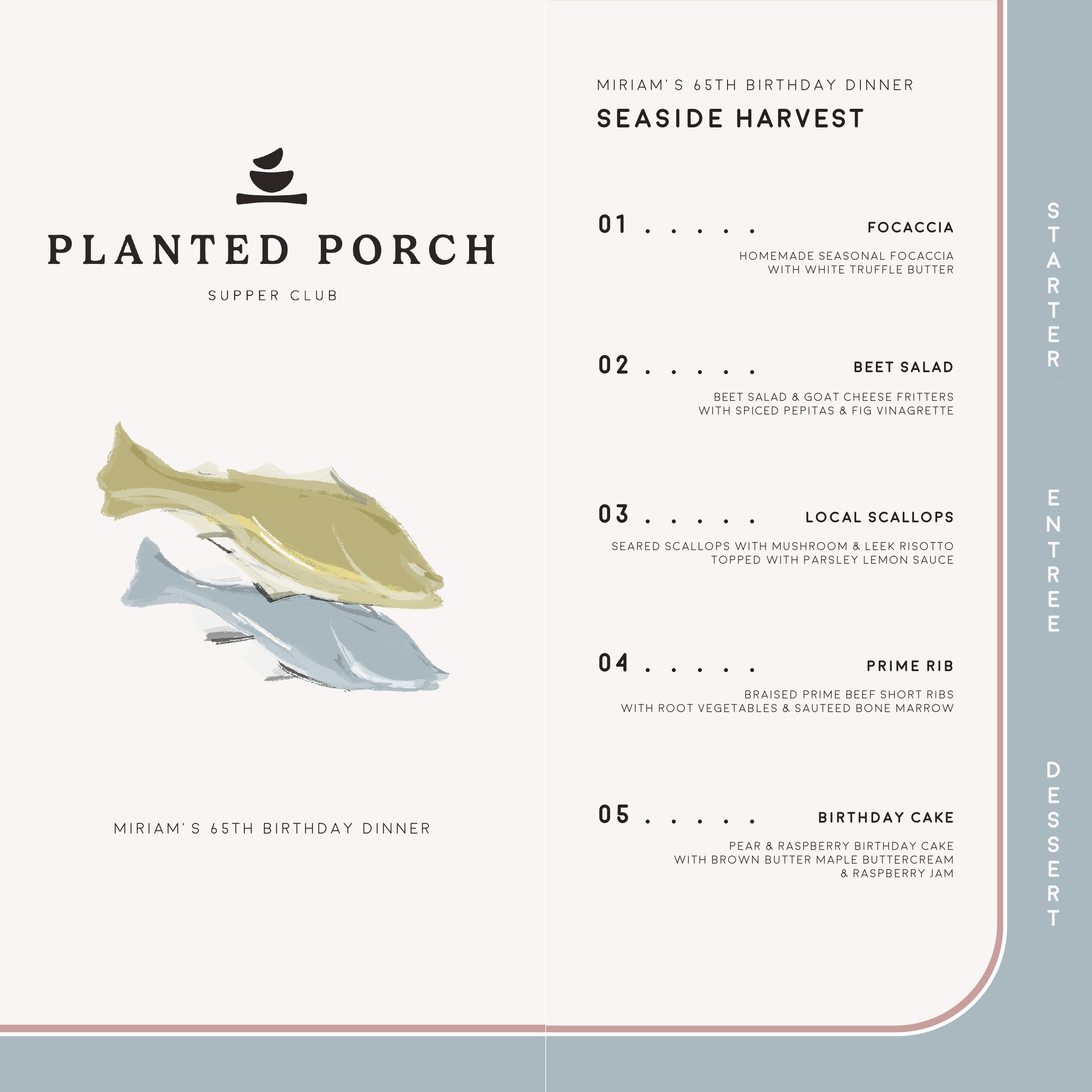 Each menu is uniquely crafted for your event. The specific dishes and visual design are the difference of an unforgettable dining experience, as a collaboration between your vision and the Planted Porch team expertise. Slide 1 Slide 1 (current slide) Slide 2 Slide 2 (current slide) Slide 3 Slide 3 (current slide) Slide 4 Slide 4 (current slide) Slide 5 Slide 5 (current slide) Slide 6 Slide 6 (current slide) Slide 7 Slide 7 (current slide) Slide 8 Slide 8 (current slide) Slide 9 Slide 9 (current slide) From our porch to yours. Book a Dinner Party